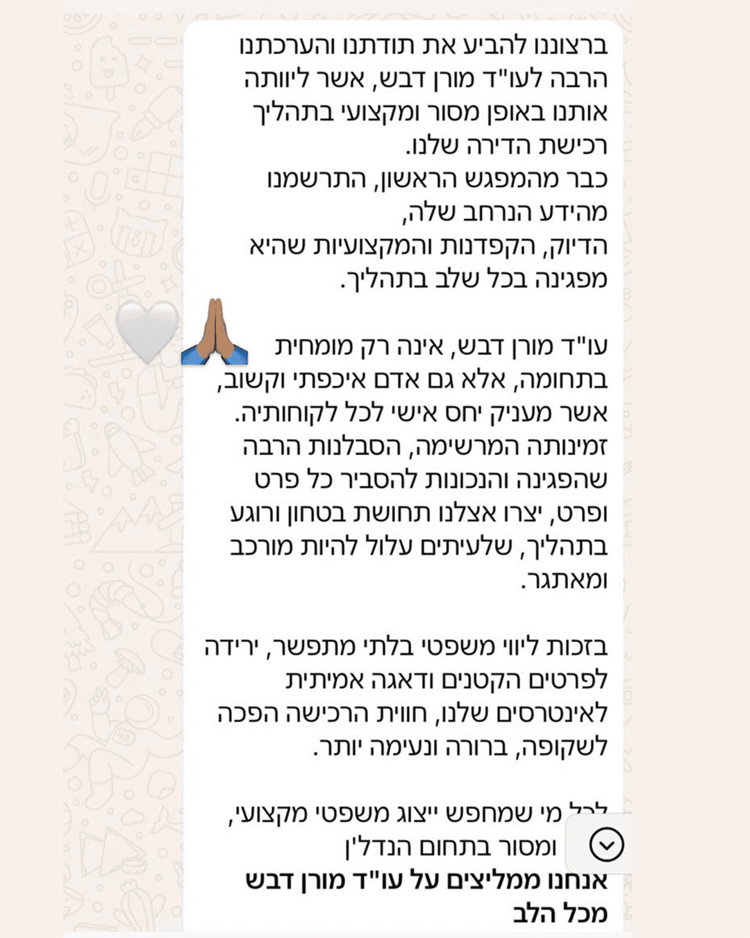קוראים לי מורן דבש, עורכת דין מומחית לעיכוב במסירת דירות. אני בודקת את החוזה, את נספחי השינויים ואת נתוני המסירה – ומציגה לכם תמונה ברורה